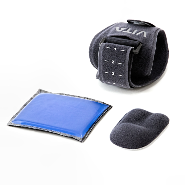 Το πίεστρο σιλικόνης χρησιμεύει για την απαιτούμενη δυναμική συμπίεση στον έσω ή έξω κόνδυλο, ενώ το gel pad ενδύκνειται για χρήση κρυοθεραπείας.