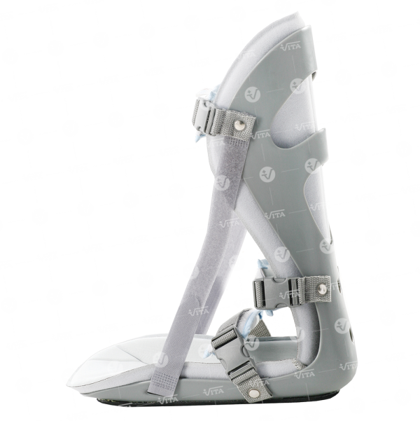 Κατασκευή από εύκαμπτο πλαστικό υλικό υψηλής ποιότητος. Η εσωτερική επένδυση είναι από αφρώδες υλικό (foam). Αυτοκόλλητη και προσθαφαιρούμενη. Αεριζόμενη και αντιεφιδρωτική. Στο πρόσθιο τμήμα φέρει τρεις ιμάντες σταθεροποιητικούς και δύο πλάγιους που ρυθμίζουν την κάμψη του κάτω άκρου. Διαθέτει αντιολισθητικό πέλμα που αυξάνει τη σταθερότητα της βάδισης. Αμφιδέξιος.