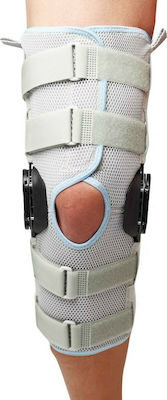 Φέρει πρόσθια οπή στην περιοχή του γόνατος, ενώ διαθέτει δύο πλάγιες μπανέλες αλουμινίου με πολυκεντρικές αρθρώσεις “ROM” κάμψης – έκτασης (0°, 15°, 30°, 60°, 90°) για την σταθεροποίηση των πλαγίων συνδέσμων. Υψος 40cm.